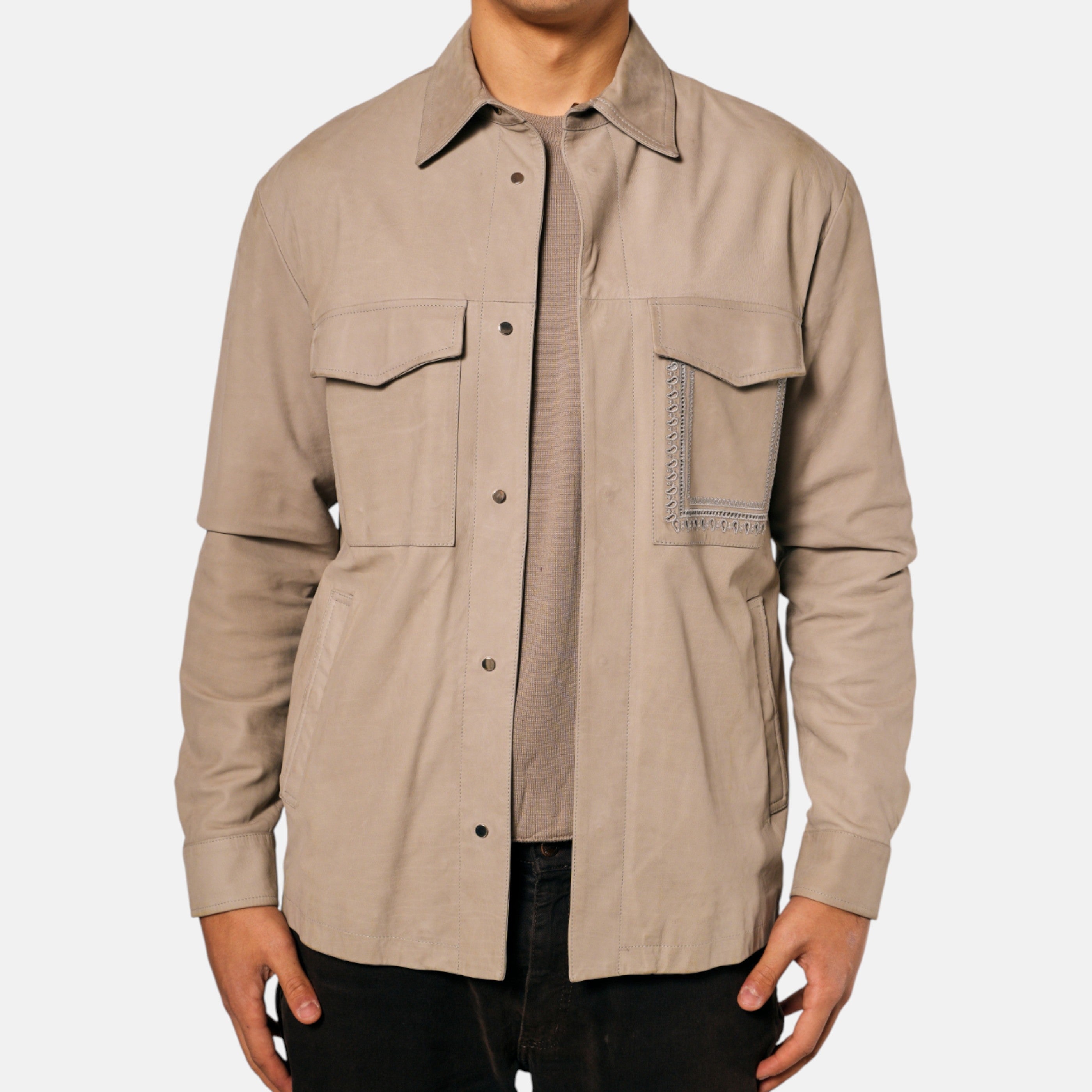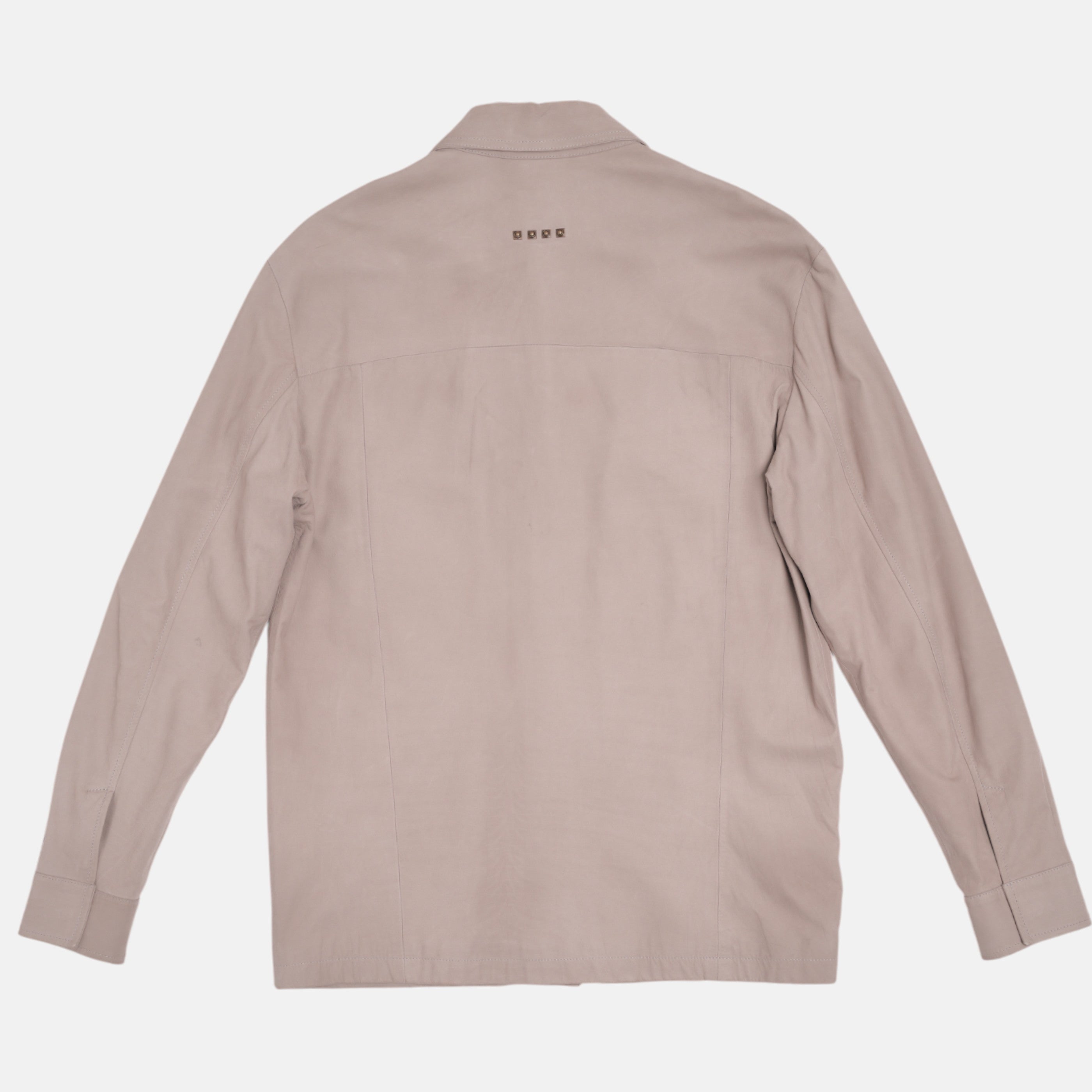 La giacca diritta è realizzata in morbido daino ed è completamente foderata.