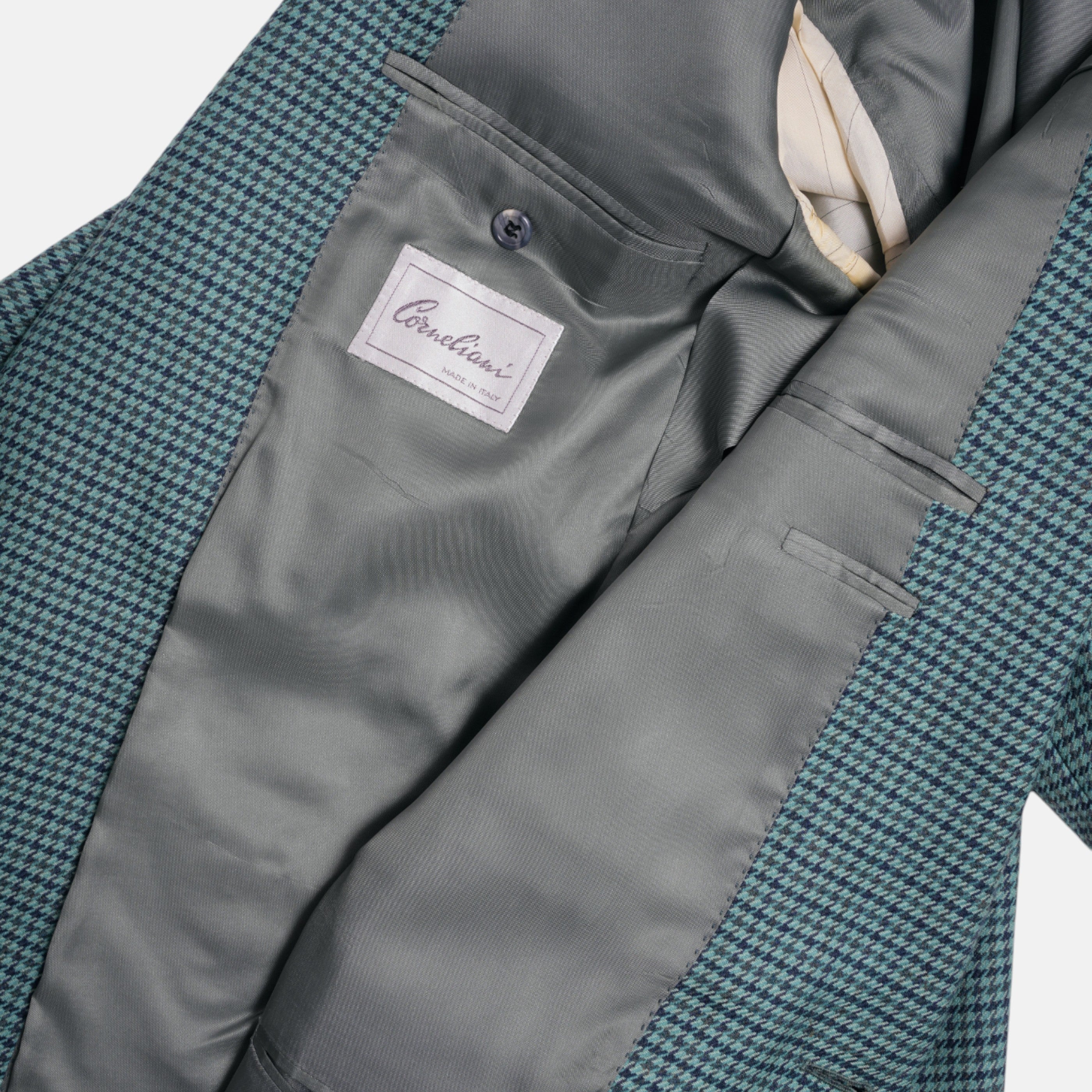 Raffinata giacca Corneliani in lana vergine con fantasia pied-de-poule.