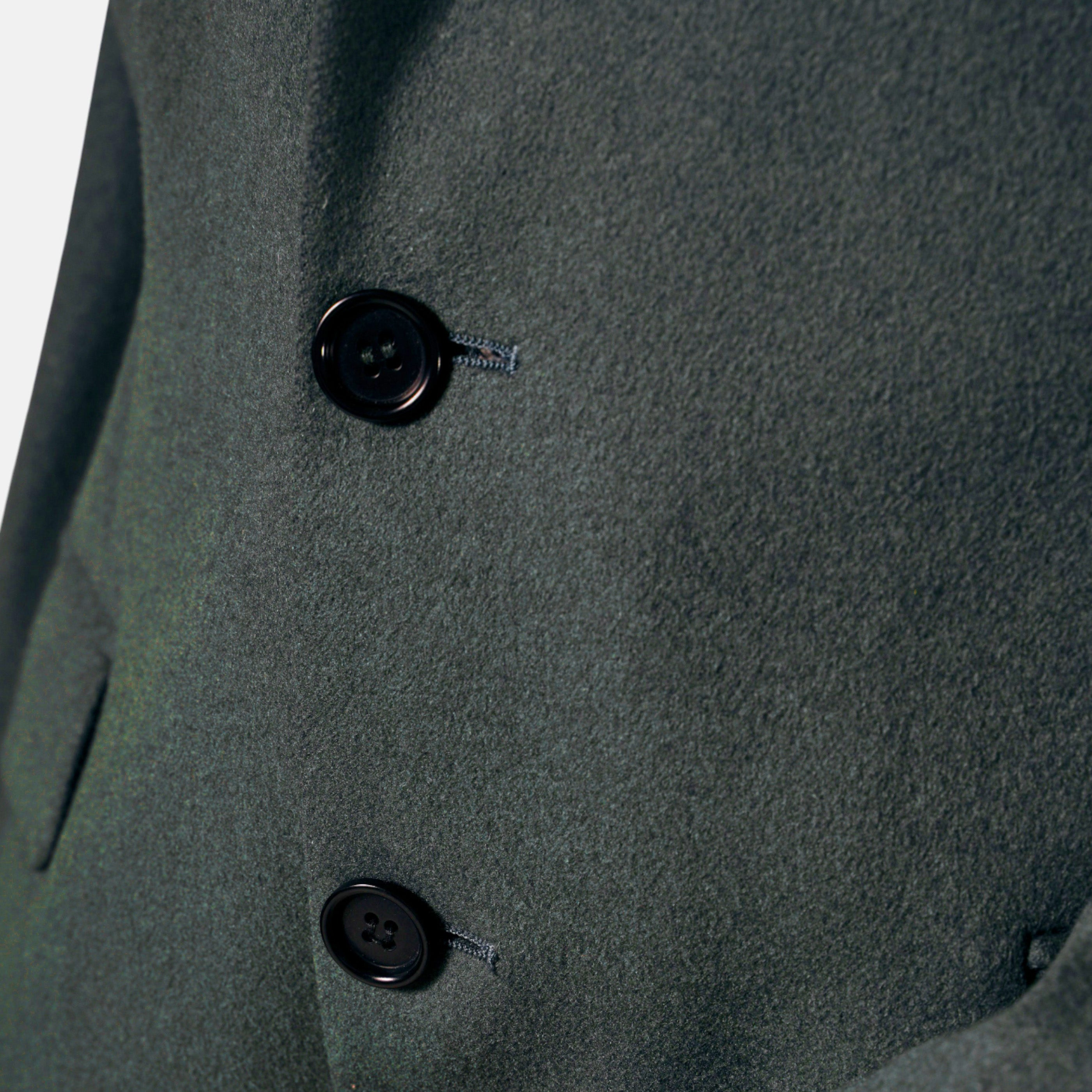 Il verde petrolio e la fodera ricamata la rendono un capo sofisticato da occasioni importanti.
