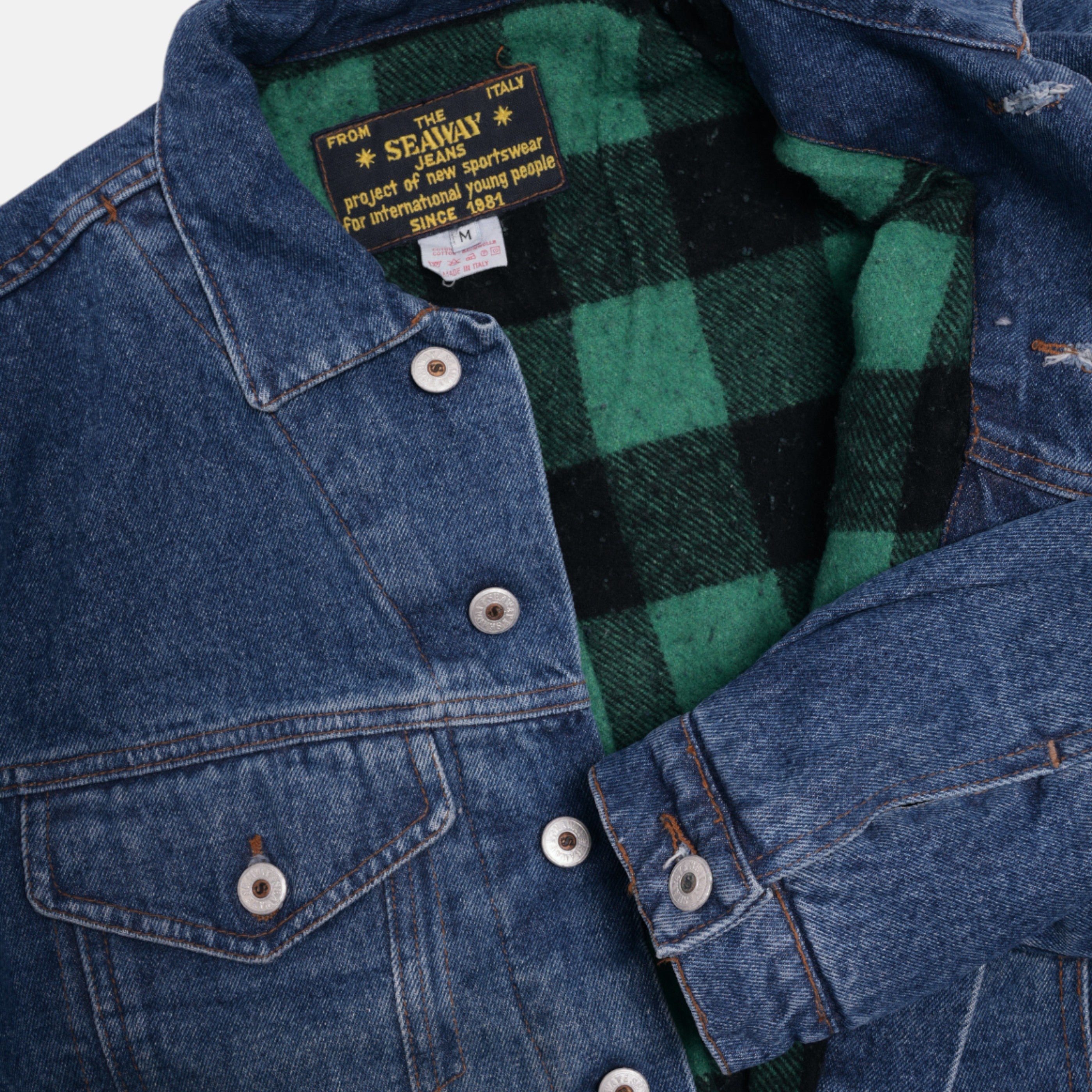 Giubbotto denim autentico The Seaway Jeans, realizzato in 100% cotone puro con fodera interna che garantisce comfort e isolamento termico. Questo capo rappresenta un'icona dello streetwear italiano, caratterizzato da una costruzione robusta e dettagli senza tempo. La qualità della manifattura e la solidità dei materiali lo rendono un investimento duraturo nel guardaroba. Perfetto per chi apprezza l'autenticità del vintage e la versatilità di un pezzo che si adatta a molteplici stili e occasioni.