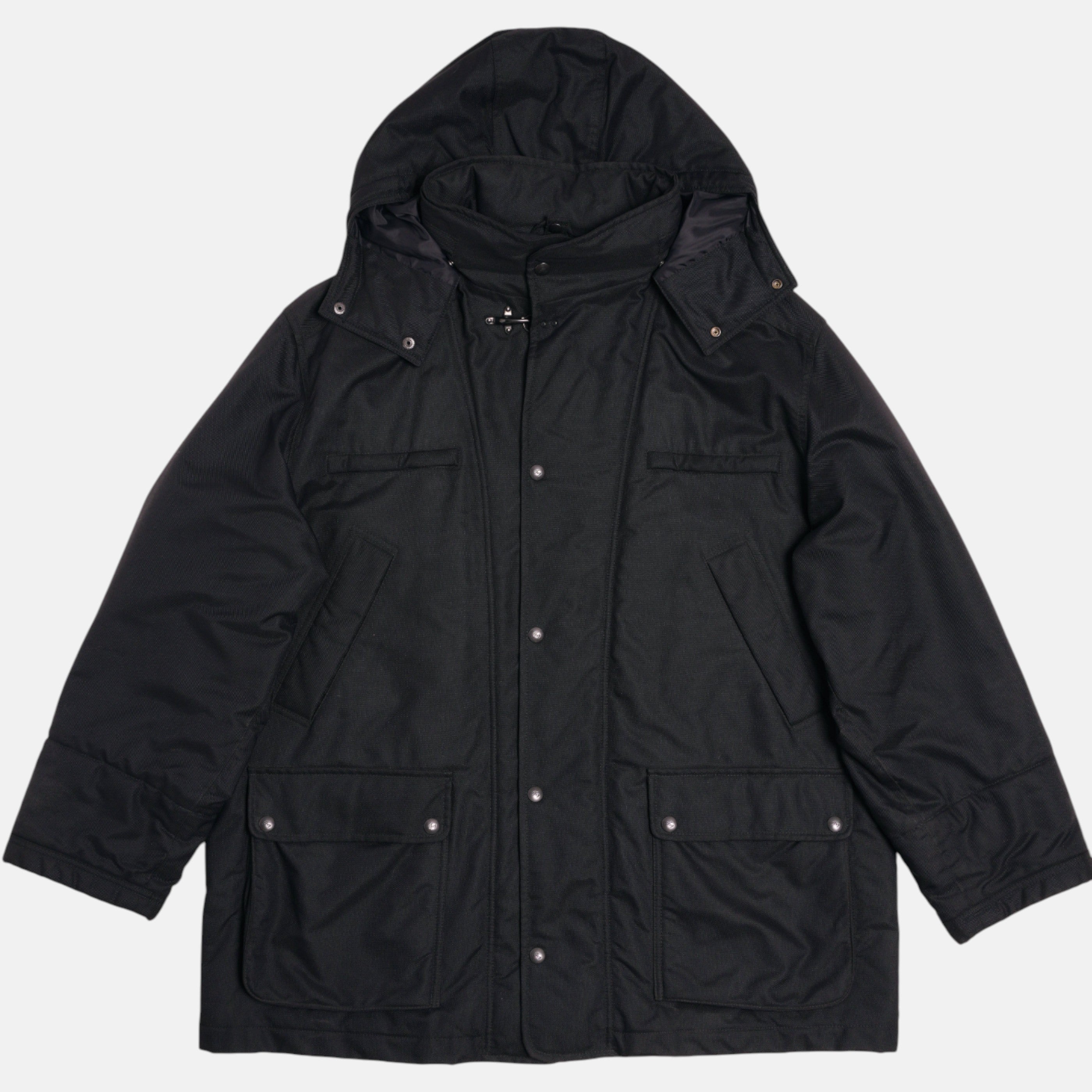 Realizzato in tessuto tecnico con cappuccio rimovibile e dettagli funzionali, unisce eleganza e praticità.