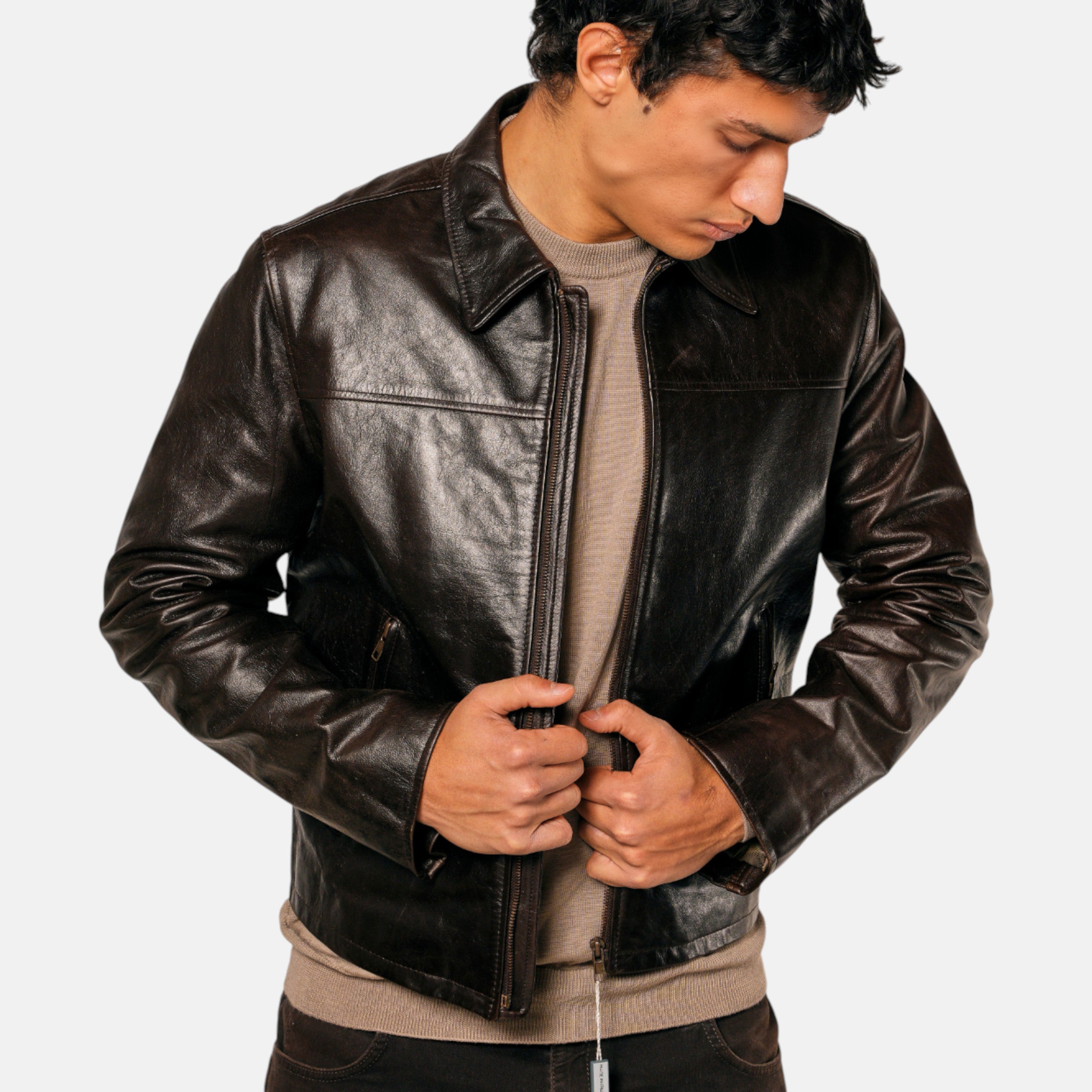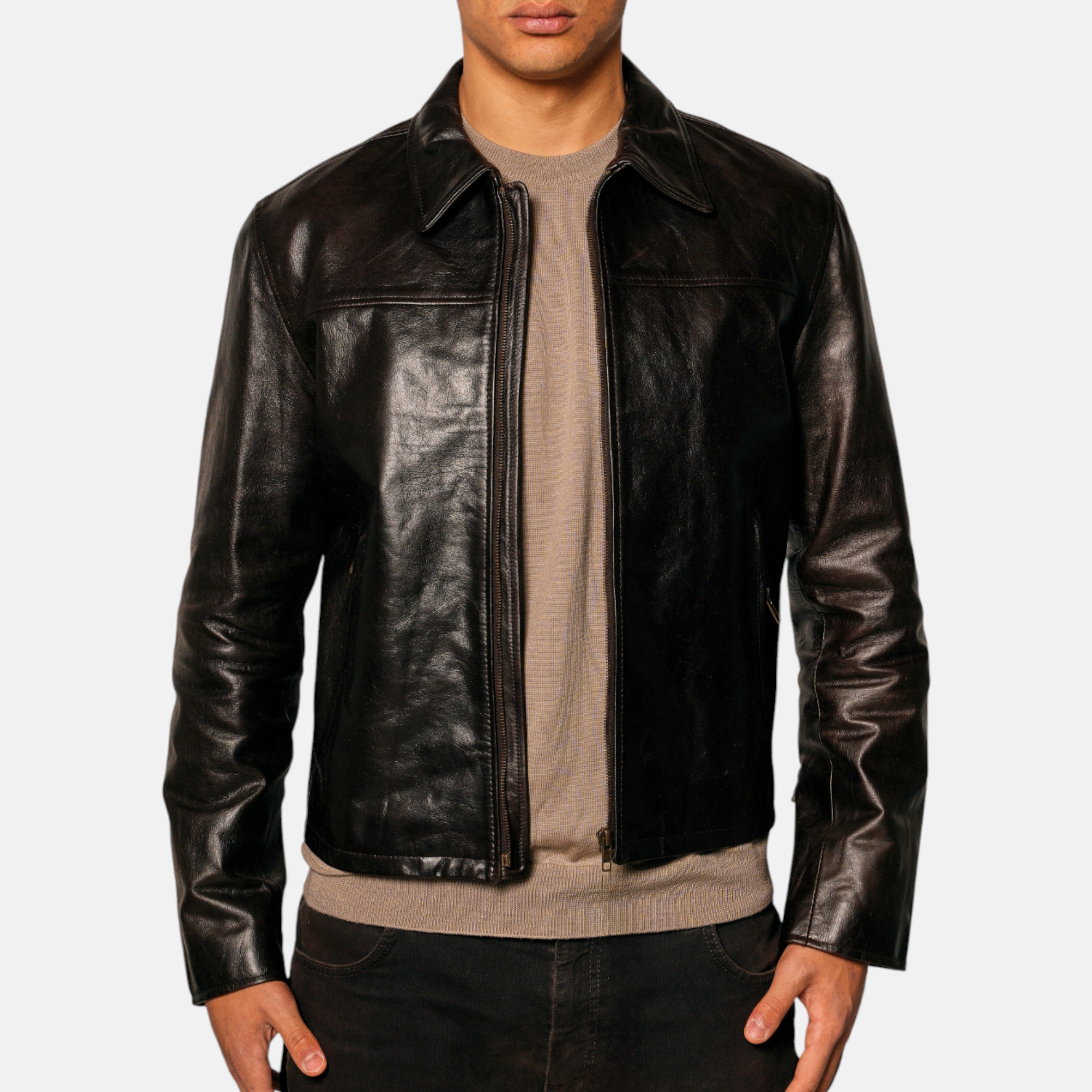 Un giubbotto in vera pelle dal mood vintage cinematografico: morbido, lucidato dal tempo e con un carattere fortissimo.