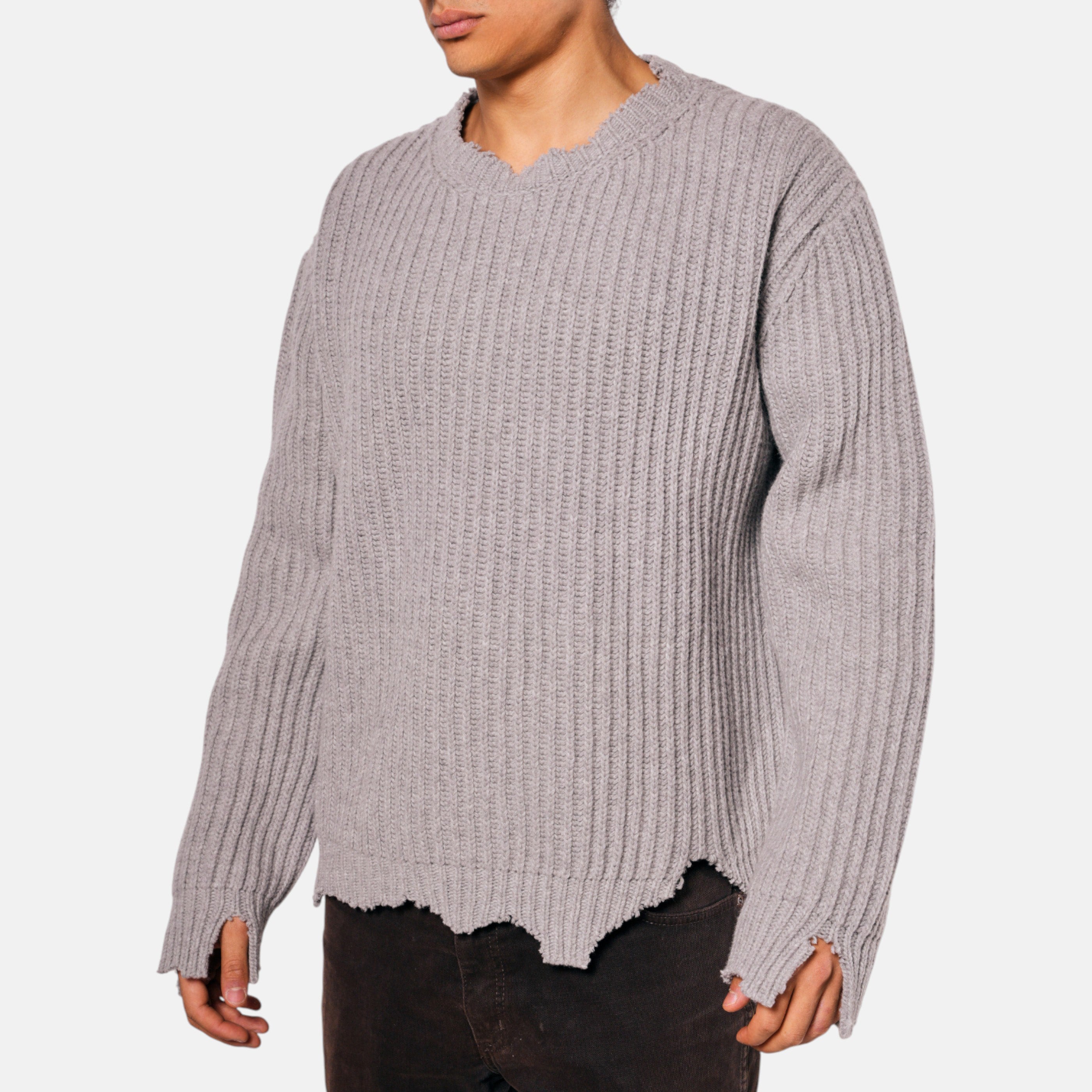 Maglione grigio Broken Paura in misto lana, morbido e caldo, con un design pulito ma deciso.