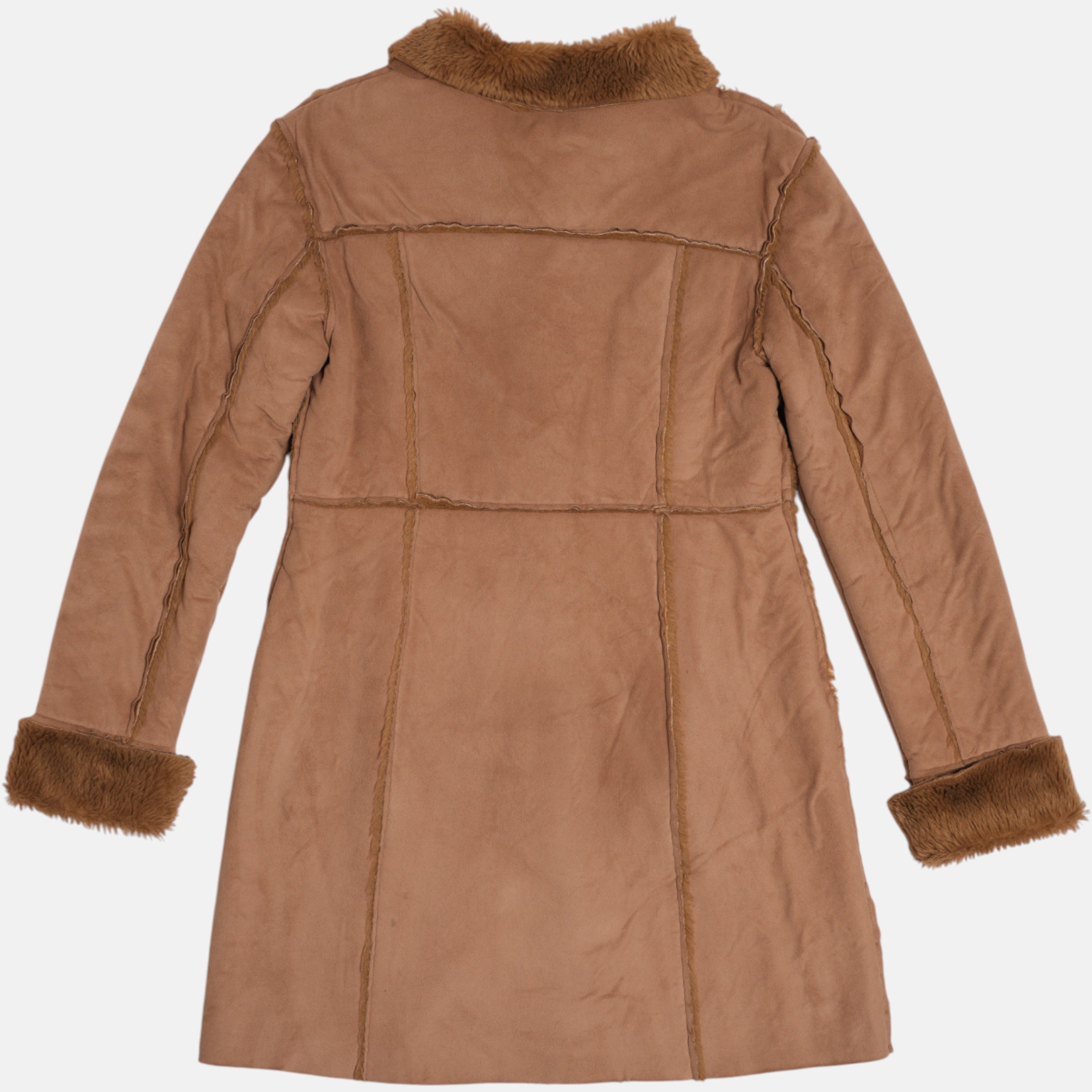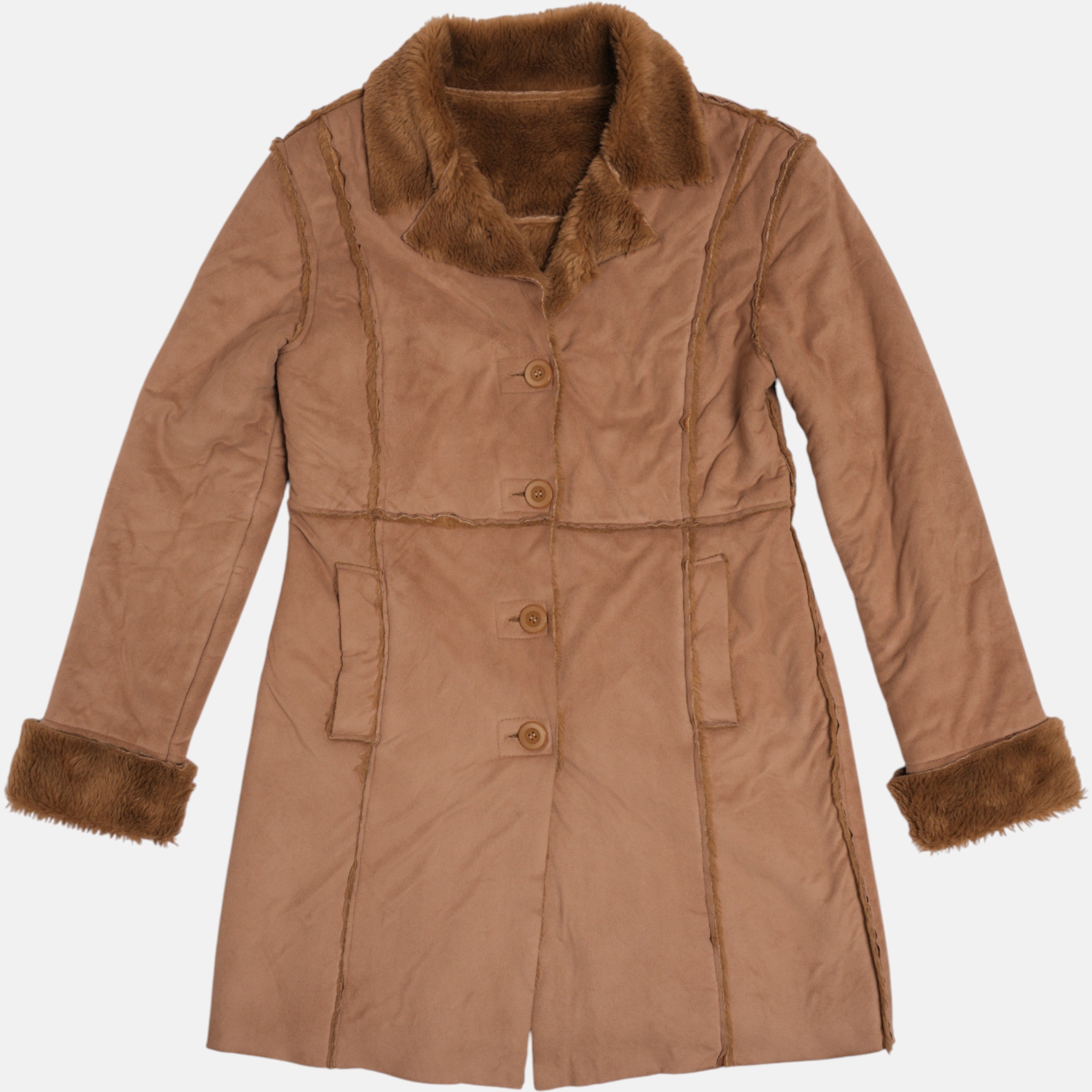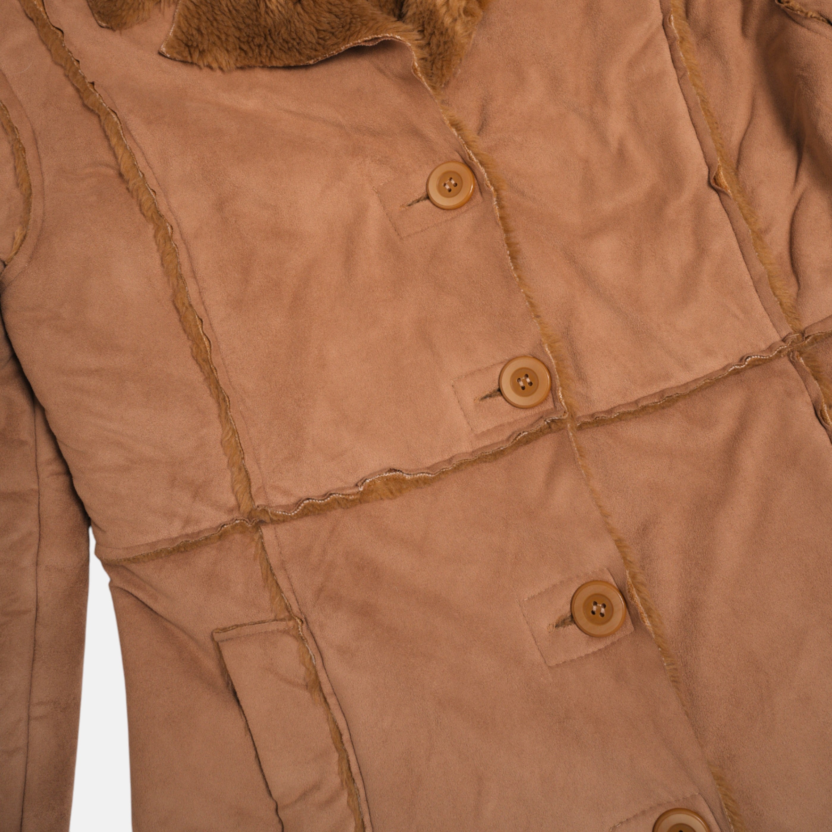 Un montone sintetico dal look vintage e avvolgente. Morbido al tatto e con un taglio oversize, dona immediatamente calore e personalità a chi lo indossa. Perfetto per l’inverno, da portare su denim o pantaloni sartoriali.